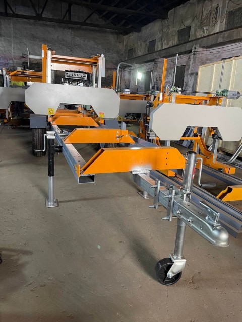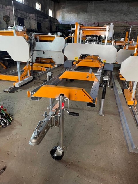 Fundamentet er utstyrt med justerbare stokkstøtter for å holde stokken på plass under saging. Standard skinnegang består av 2 stk. 2 meter lange seksjoner som tillater stokklengder opp til 3,4 meter.