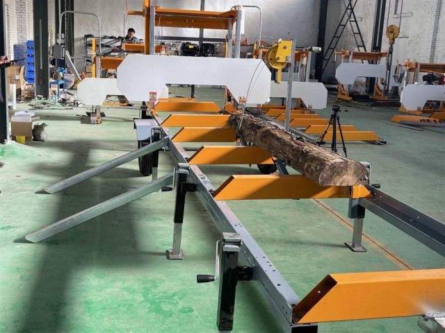 Sagaggregatet ruller langs to kraftige laserskjærte stålskinner som sikrer rettlinjet sagskur.